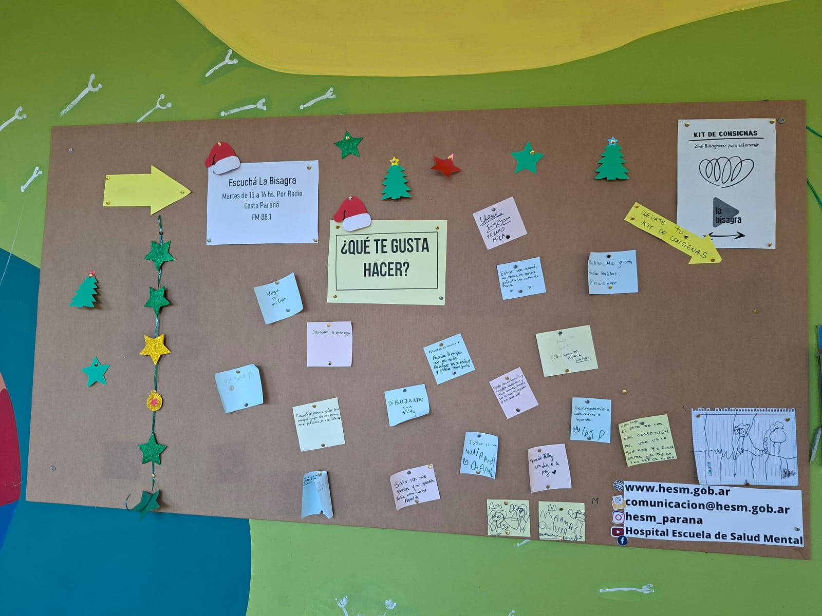 Las carteleras, ese gesto, detalle, intervención que significa un parate, tanto para quien la piensa y habilita, como para quien responde y se habilita a dejar su huella en un rincón del hospital.